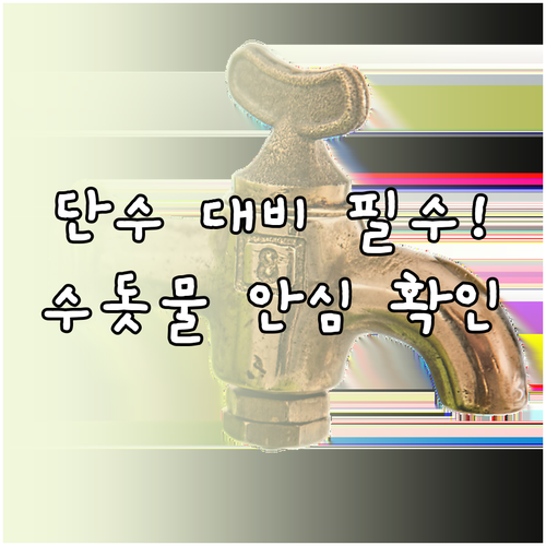 - 공식 채널 확인: 아파트 관리사무소 방송이나 K-water 홈페이지의 ‘단수 정보’ 게시판을 참고하세요.